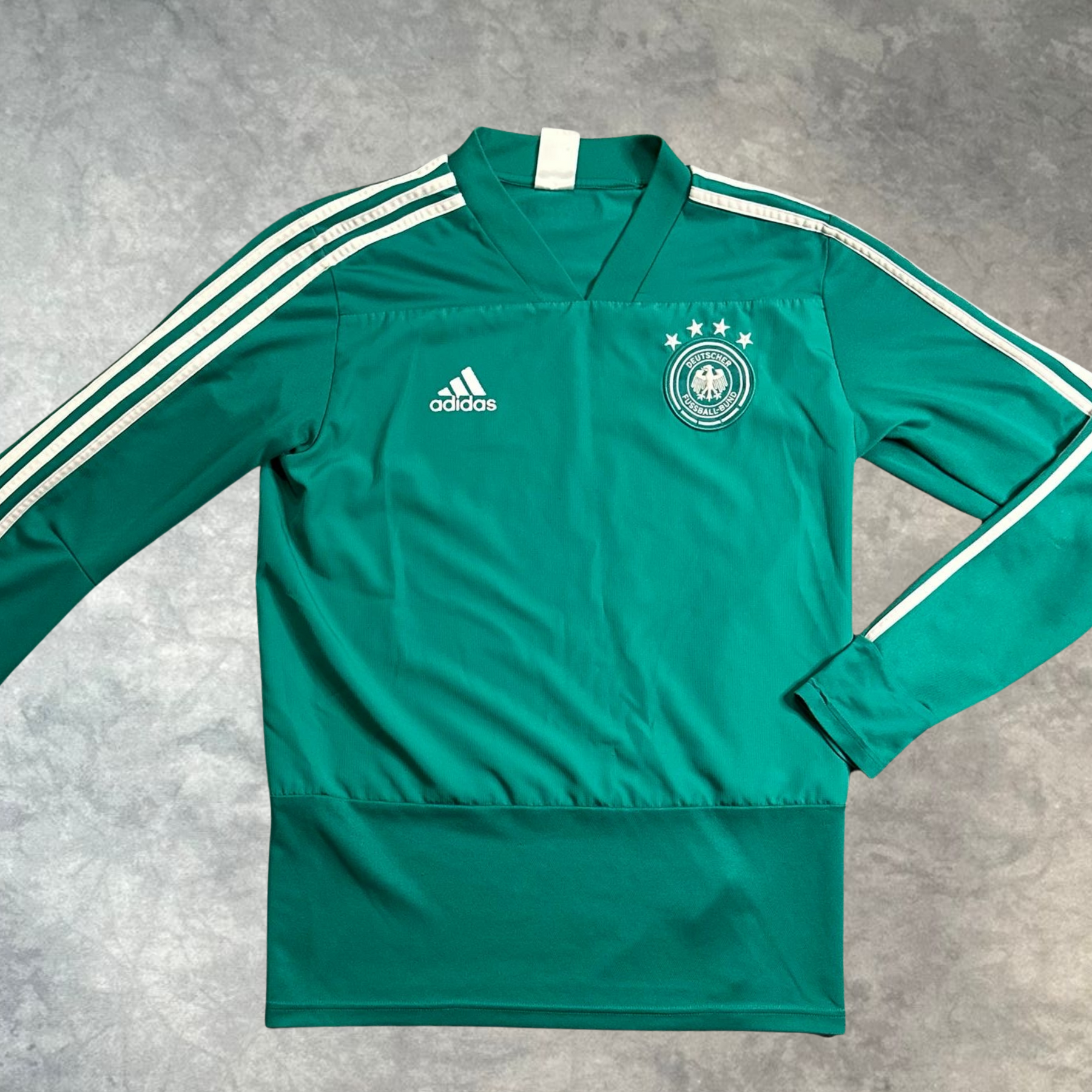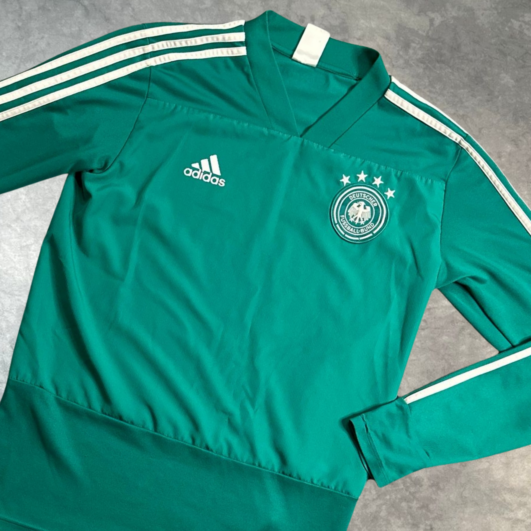Vintage Deutschland Sweatshirt – Grün | Größe M Cooles Deutschland Sweatshirt in einem satten Grün – perfekt für Fußballfans oder einfach für einen lässigen Look! 🔹 Größe: M 🔹 Farbe: Grün mit Deutschland-Details 🔹 Zustand: Sehr gut erhalten 🔹 Material: Polyester, angenehm zu tragen 🔹 Besonderheiten: Seltenes Vintage-Design, perfekt für Stadion & Freizeit Mega nice für den nächsten Fußballabend oder als Vintage-Style im Alltag!